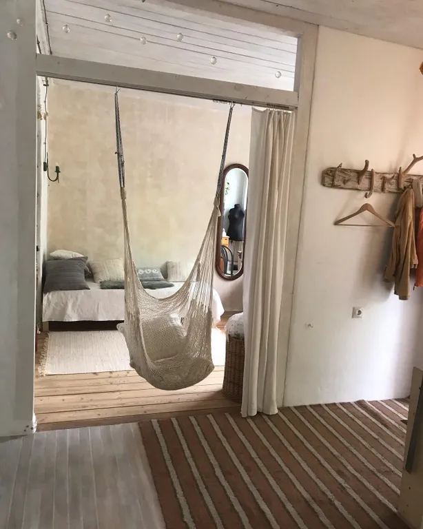 Важно: в доме нет межкомнатных дверей (кроме двери в гостевой туалет). Все помещения разделены шторами — это видно на фотографиях. В доме много света, но даже в жаркую погоду здесь комфортно.