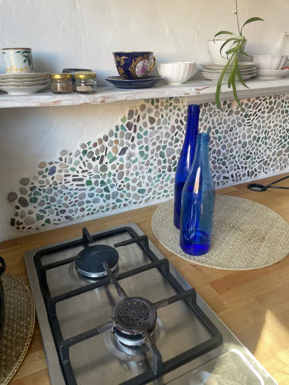 Это пространство идеально для взрослых людей!!! Именно поэтому дети - только по предварительной договоренности. Дом рукотворный: мозаики из морских камней, белая штукатурка по старинному кирпичу, некрашеные деревянные полы из лиственницы. В интерьере — только натуральные ткани и материалы. Все шторы и подушки созданы мною — каждая в единственном экземпляре.