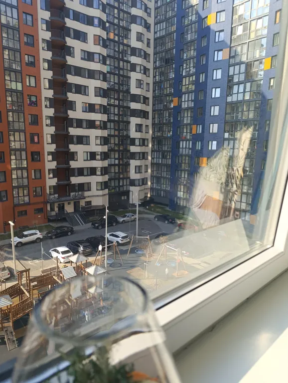 Панорамные окна с видом на детские площадки.