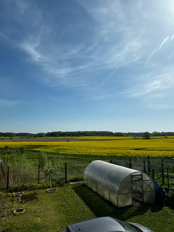 В летний период садим для наших гостей в теплице огурцы и помидоры . Также на участке можно полакомиться: красной и черной смородиной, жимолостью, малиной, йоштой, сортовой вишней и черешней, яблоками и грушей.