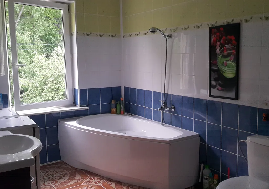 В ванной комнате гидромассажная ванна и душевая кабина.