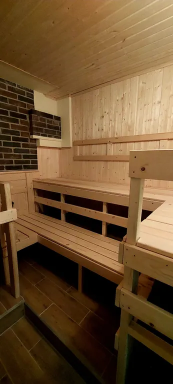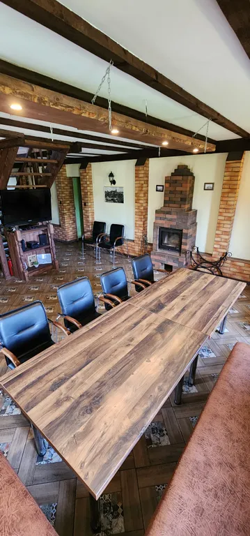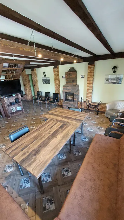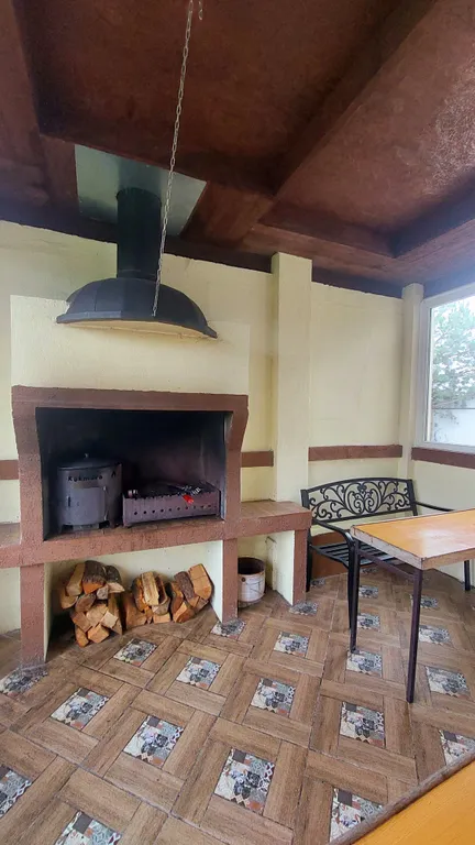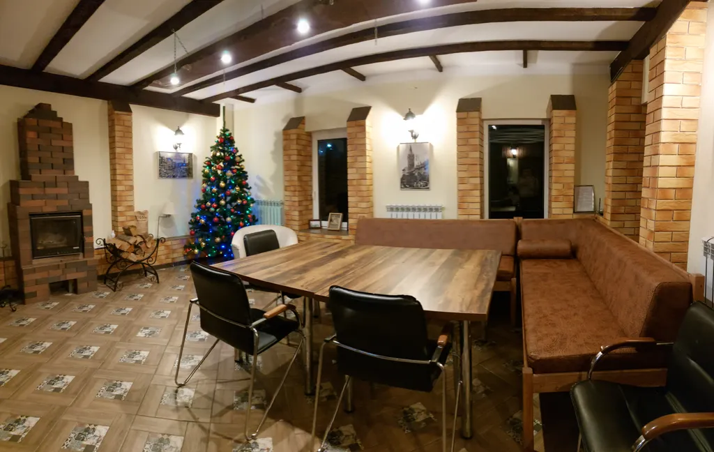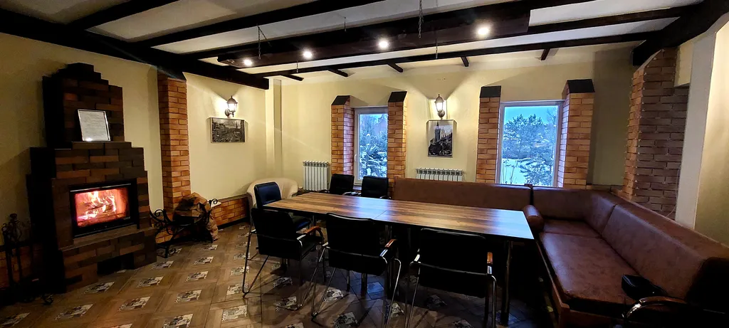 Первый этаж просторный зал с камином, на втором этаже 6 спален, предоставляемых по количеству гостей.