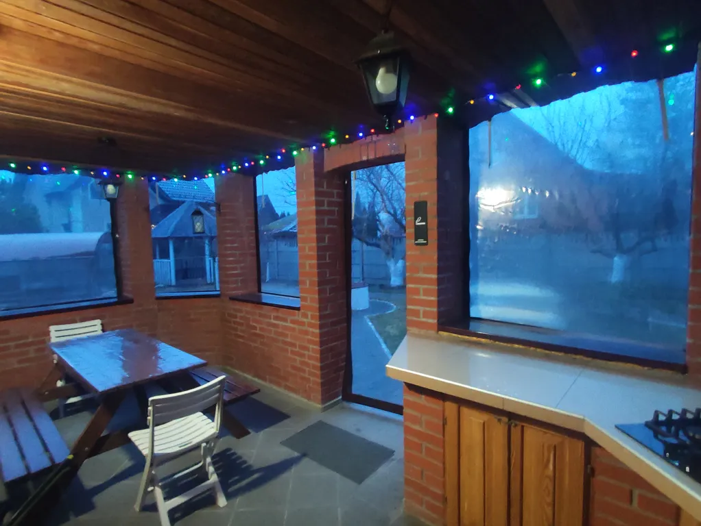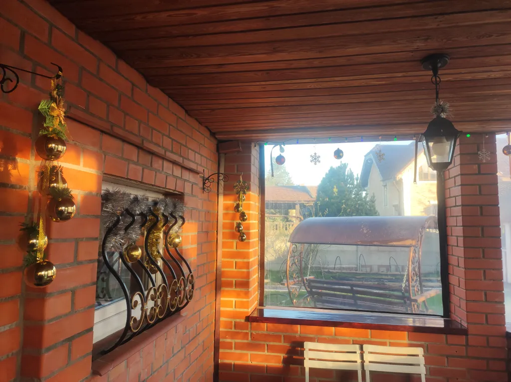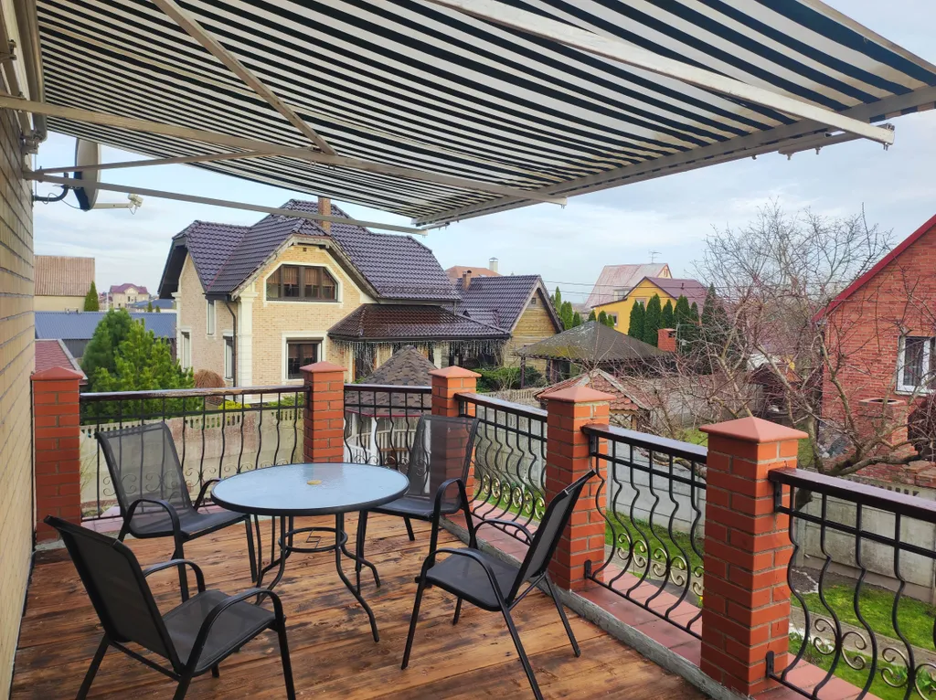 В доме на 1 этаже дома баня на дровах. Два балкона: смотровой на 3 этаже и мансардный на 2-м.