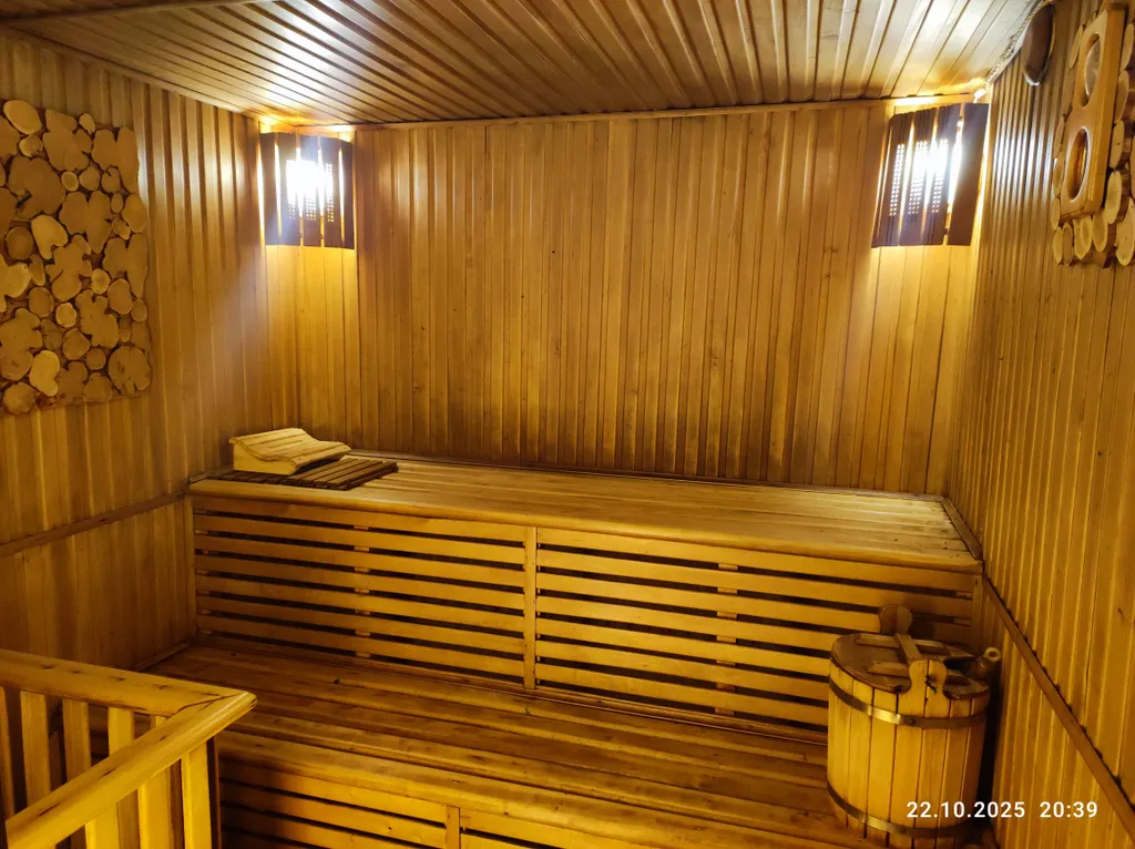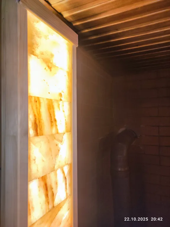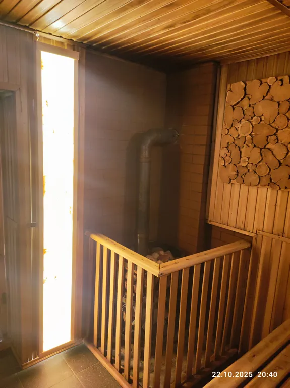 В бане установлена чугунная печь с лечебными камнями из карелии и уральских гор, имеется обливное ведро для сильных духом банщиков, ароматное панно из можжевельника и соленая лампа из гималайской соли!