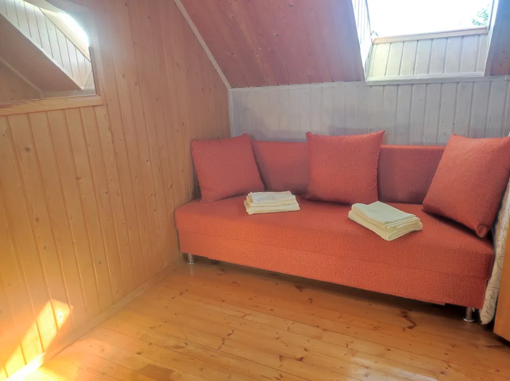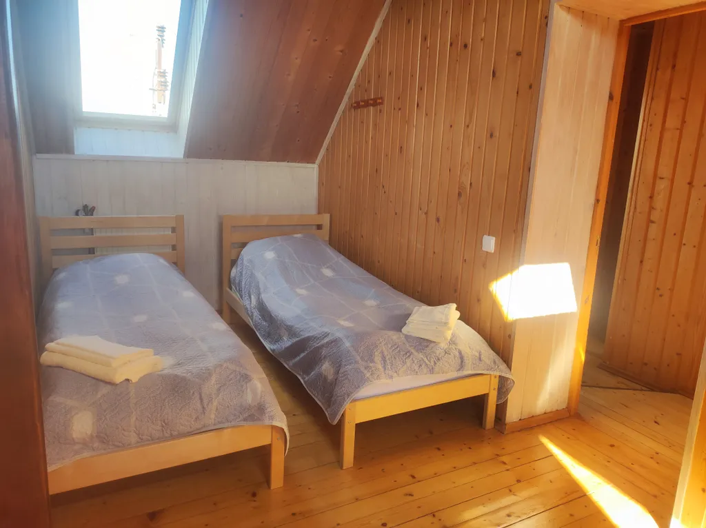 Второй этаж: 2-спальный диван, 2 односпальные кровати (устанавливаются по необходимости).