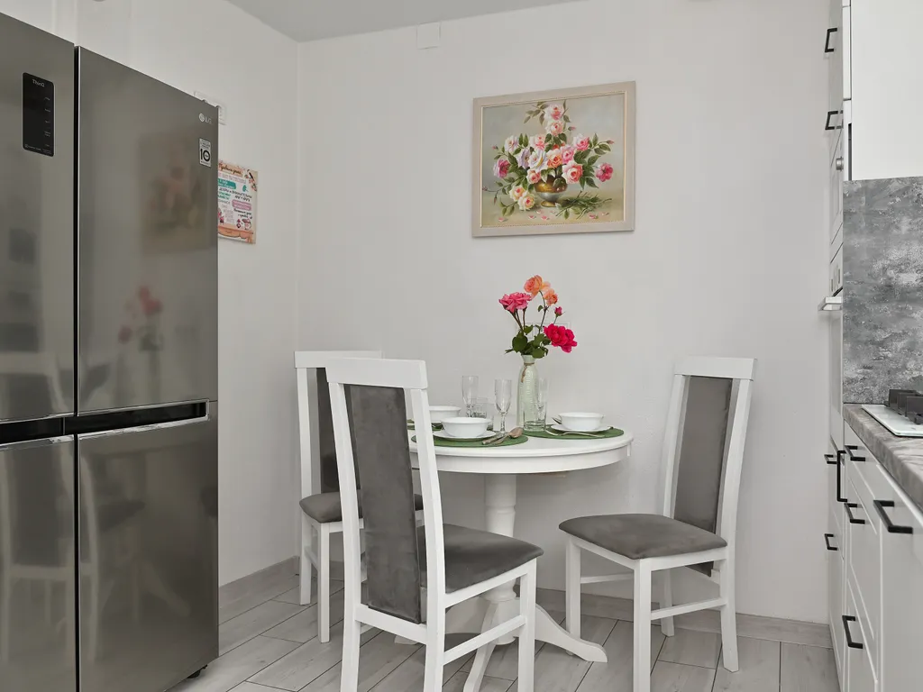 Возможность посидеть с чашечкой кофе под большими старыми яблонями. Стоянка на один легковой автомобиль. До верхнего озера, где удобно гулять, 15 минут пешком. Рядом магазины: «Победа», «Пятерочка», «Спар», белорусский магазин.
