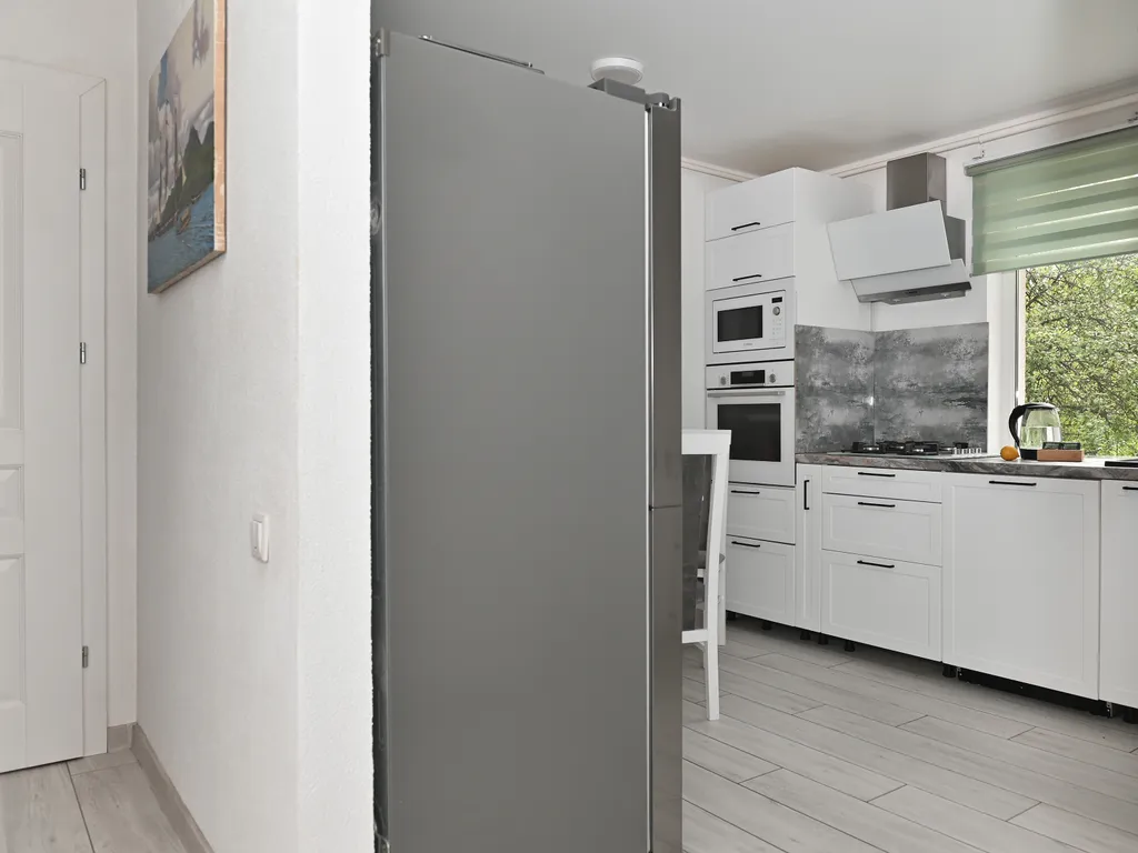На период отпуска в вашем распоряжении будет первый этаж с современным отличным ремонтом и шесть соток сада с большими плодовыми деревьями.
