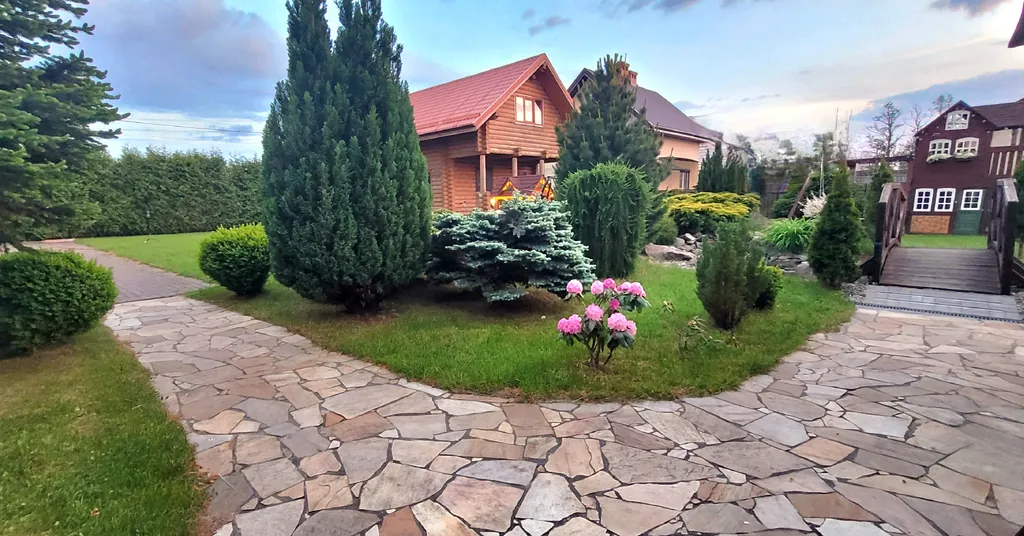 Вокруг виллы просторная ухоженная огороженная территория с альпийскими горками, прудом с мостиком и большой беседкой с мангалом.