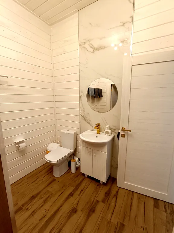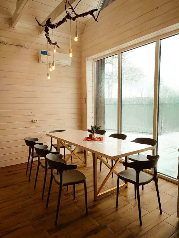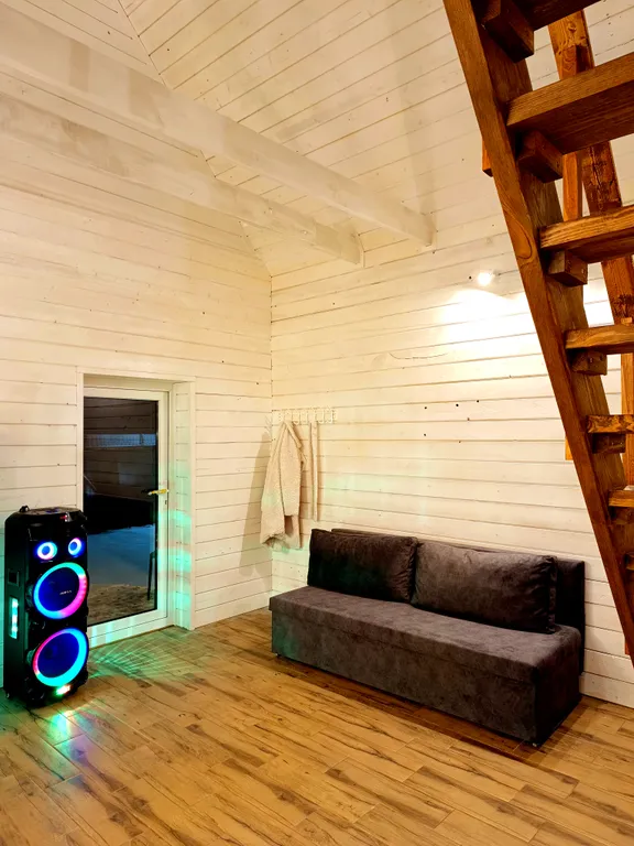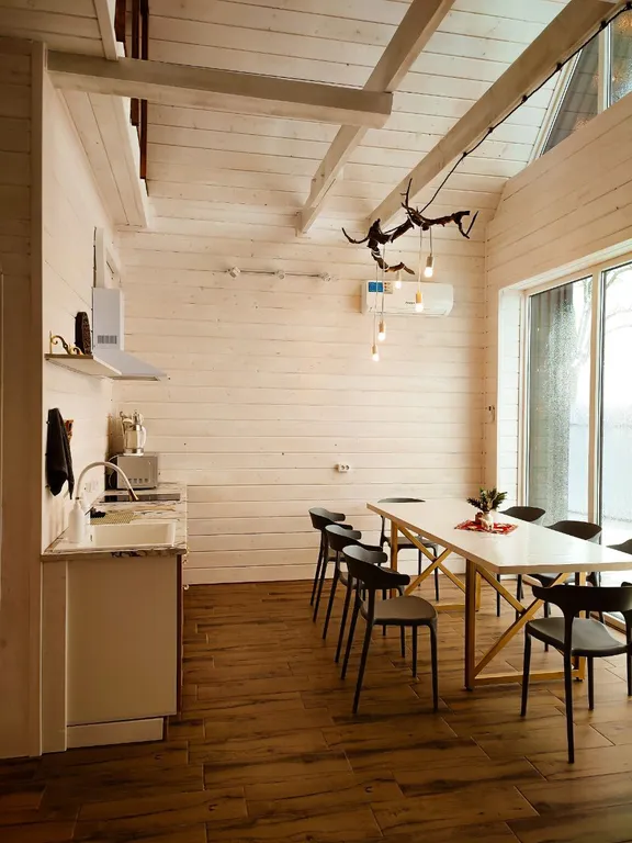 Максимальное количество гостей — 8 человек (как и спальных мест: 2-спальная кровать в изолированной комнате на 1 этаже, 2-х спальное место в изолированной комнате на 2 этаже, 2-х спальное место на 2 этаже и 2-х спальное место на диване 1 этажа).