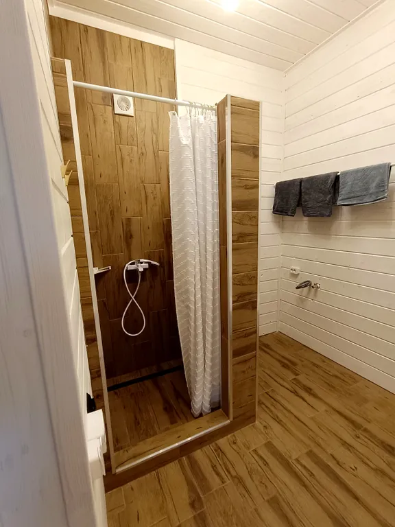 В доме есть все необходимые удобства: Wi-Fi, микроволновка, электрическая плита, кондиционер, стиральная машина, фен, большая Bluetooth-колонка.