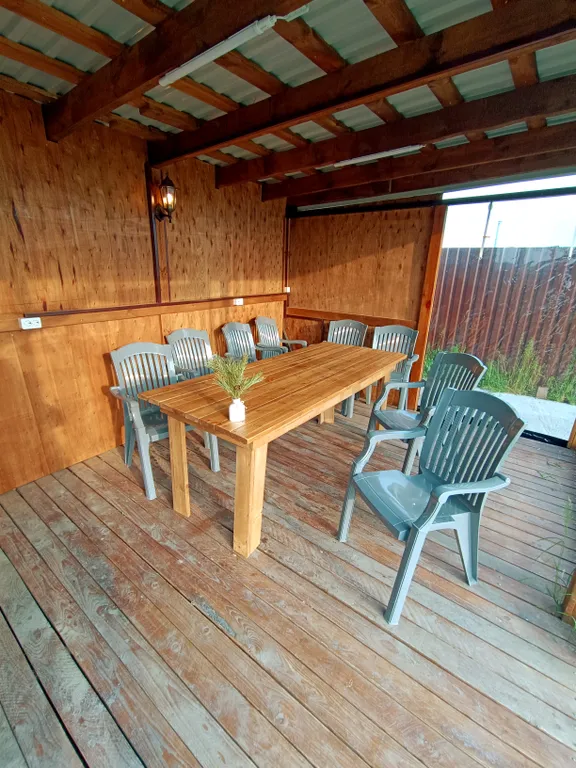 Пользование беседкой, полностью закрыта от ветра и дождя (большой стол на 8 человек).