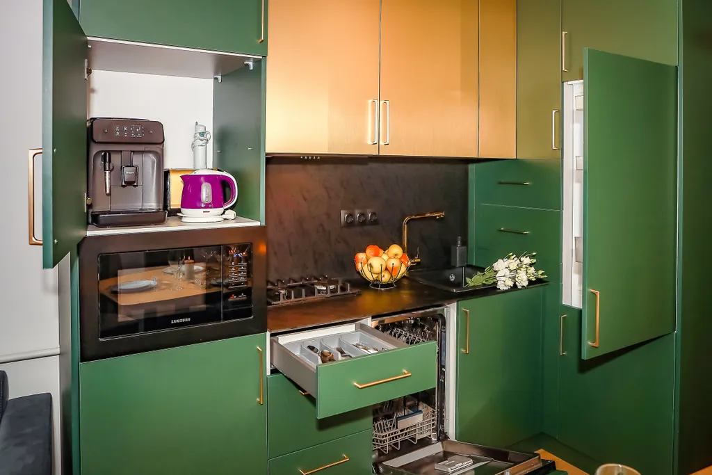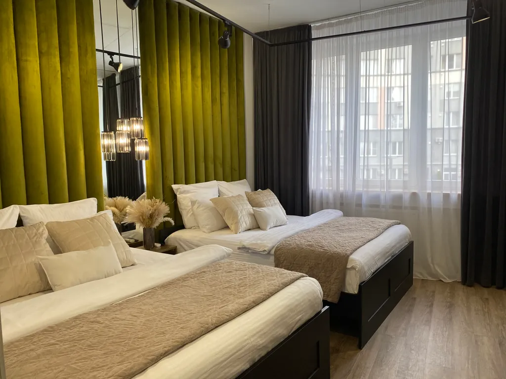 Апартаменты расположены в центре Калининграда. В 10 минутах пешком северный вокзал, площадь Победы, памятник 1200 гвардейцам. Располагаются в новом доме. Охраняемая закрытая территория, парковка, детская площадка на территории которую видно из окон. Для вашего удобства мы предусмотрели самостоятельное заселение и выезд. За день до заезда Вы получите видео-инструкцию по самостоятельному заселению. В апартаментах две спальни в каждой из них стоит по две двуспальные кровати (размер 180*200) с комфортабельными матрасами (высотой 26 см.). В наших апартаментах мы используем только белое постельное бельё гостиничного типа (сатин). Обращаем Ваше внимание, на одной двуспальной кровати в стандартной комплектации одно двуспальное одеяло (200*200), если понадобится дополнительное бельё, сообщите менеджеру заранее, мы подготовим его за дополнительную плату. Предоставляются по два полотенца для каждого гостя, также имеются халаты и коврики для ног. Три кондиционера и два телевизора. Два туалета. Апартаменты оснащены посудомоечной машиной, чайником, кофемашиной, тостером, блендером, газовой плитой, холодильником, стиральной машинкой с функцией сушки, гладильными принадлежностями, феном, выпрямителем для волос, пылесосом и роботом пылесосом. Предоставляется стиральный порошок, губки и моющее средство для посуды, таблетки для посудомоечной машины, шампунь, кондиционер для волос, гель для душа, крем для тела, ватные палочки и диски, туалетная бумага, зубная паста. На кухне для гостей всегда есть чай, зерновой кофе, растительное масло, соль, сахар, салфетки. На кухне установлен фильтр очистки воды по технологии обратного осмоса. Для самых маленьких путешественников предоставляются стульчик для кормления, горшок, игрушки, детская кроватка подготавливается по запросу. В апартаментах установлена защита на окнах против открывания. В случаи несоблюдения тишины в ночное время, мы будем вынуждены выселить Вас. Вечеринки строго запрещены. Есть возможность оплаты на расчётный счёт с предоставлением акта выполненных работ. Есть возможность оставить вещи на время уборки до и после выселения.