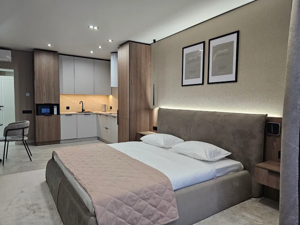 Вас встретит администратор в холле, который работает 24/7. Апартаменты подходят для отдыха пяти гостей.