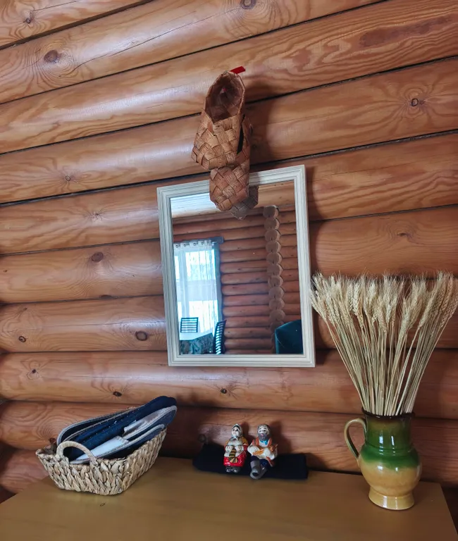 Для приготовления и хранения еды: газовая плита, СВЧ печь, холодильник, электрический чайник, вся необходимая посуда. На территории есть мангальная зона, где можно пожарить шашлыки.