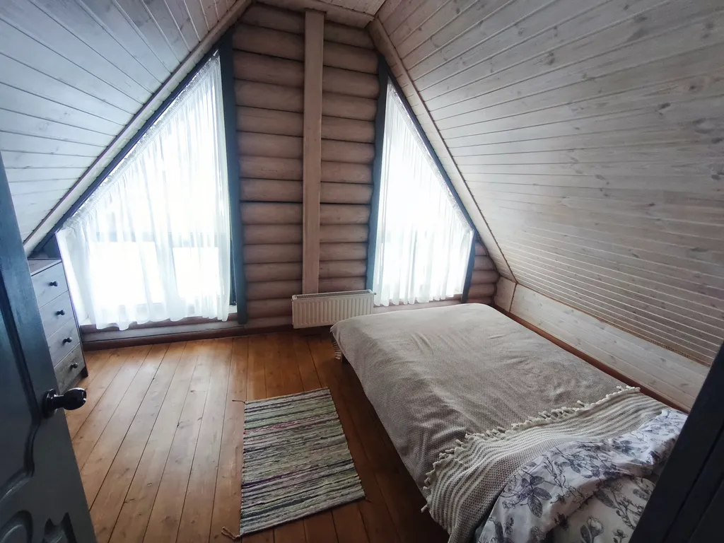 На первом этаже раскладной двухместный диван, кухня-столовая, баня с парилкой, душевой и вторым санузлом.