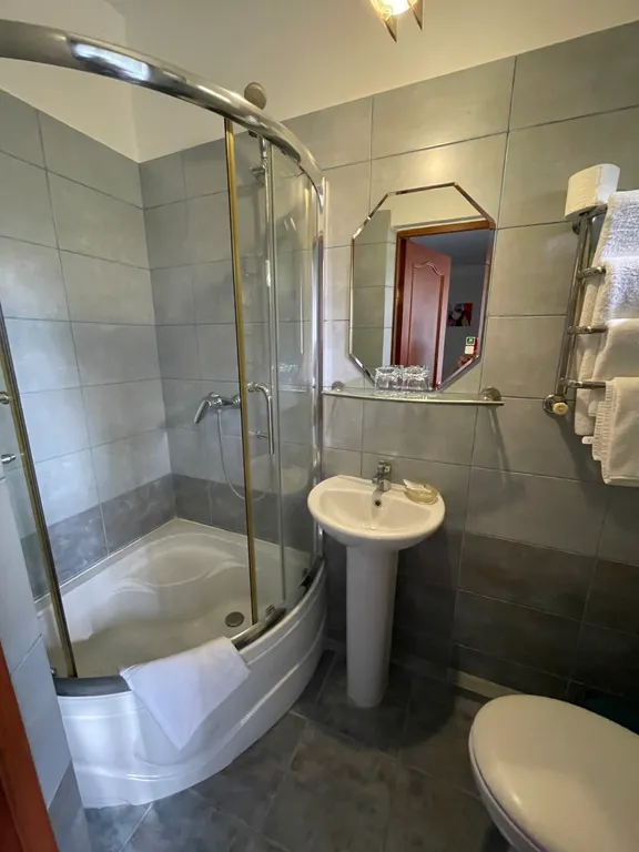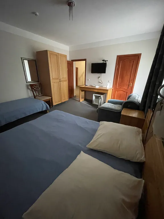 Комната более 19м2 со своим санузлом и душевой кабиной, рассчитанная на проживание трёх человек, возможно дополнительное место (раскладное кресло 1900х85 или раскладывающийся диван 1900х140).