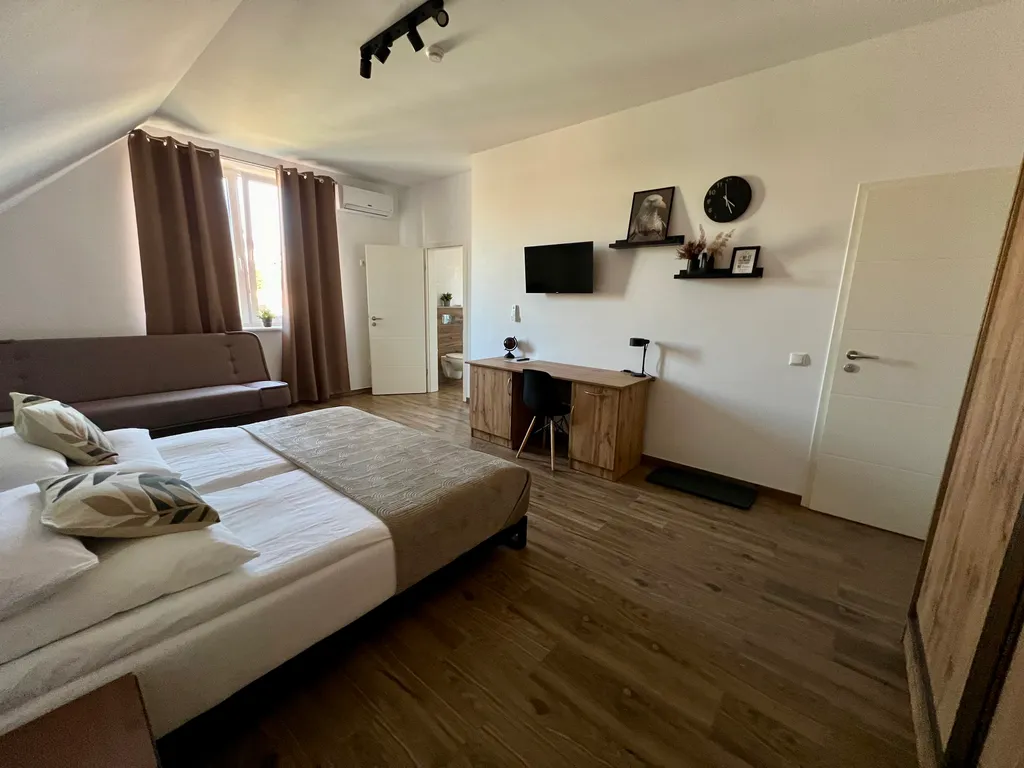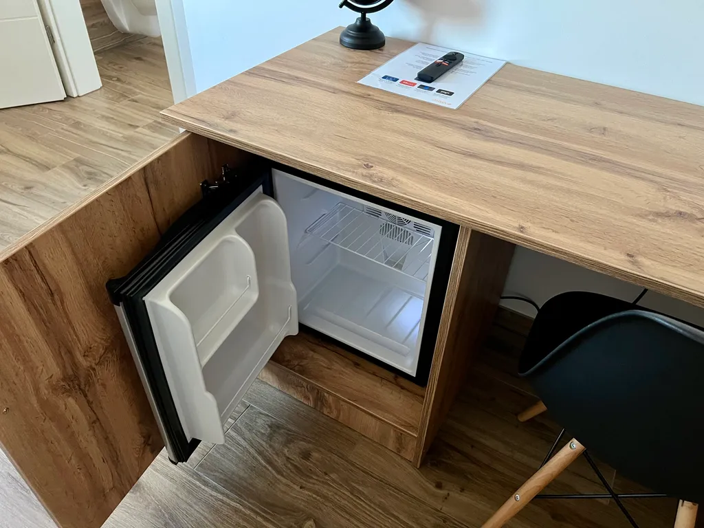 Die Einrichtung des Zimmers bietet eine stilvolle und moderne Atmosphäre, in der Sie sich sofort wie zu Hause fühlen. Mit einem bequemen Arbeitsplatz und einem Schreibtisch können Sie das Zimmer auch als Arbeitszimmer nutzen. Das Zimmer verfügt außerdem über eine Fußbodenheizung, die Sie in kalten Winternächten warm und gemütlich hält, und eine Klimaanlage, die Sie an heißen Sommertagen kühl hält. Der große Kleiderschrank bietet reichlich Platz für Ihre Kleidung und Ihr Gepäck, so dass Ihr Zimmer ordentlich und organisiert ist.