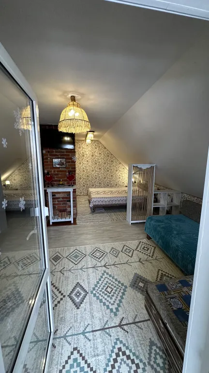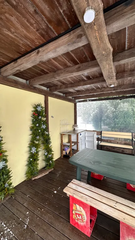 На территории в 58 соток посреди роскошного сада- огорода расположено всего два отдельно стоящих гостевых дома со всеми городскими удобствами и индивидуальными крытыми мангальными площадками.