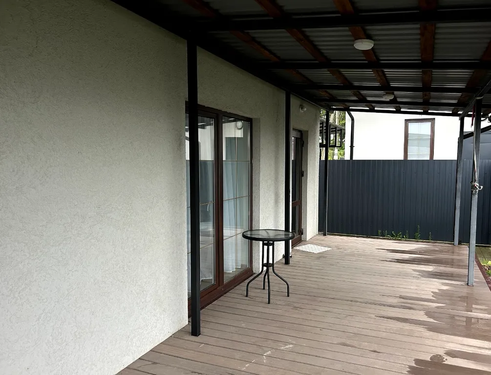 Всё новое и качественное. На территории есть мангальная зона, столик .