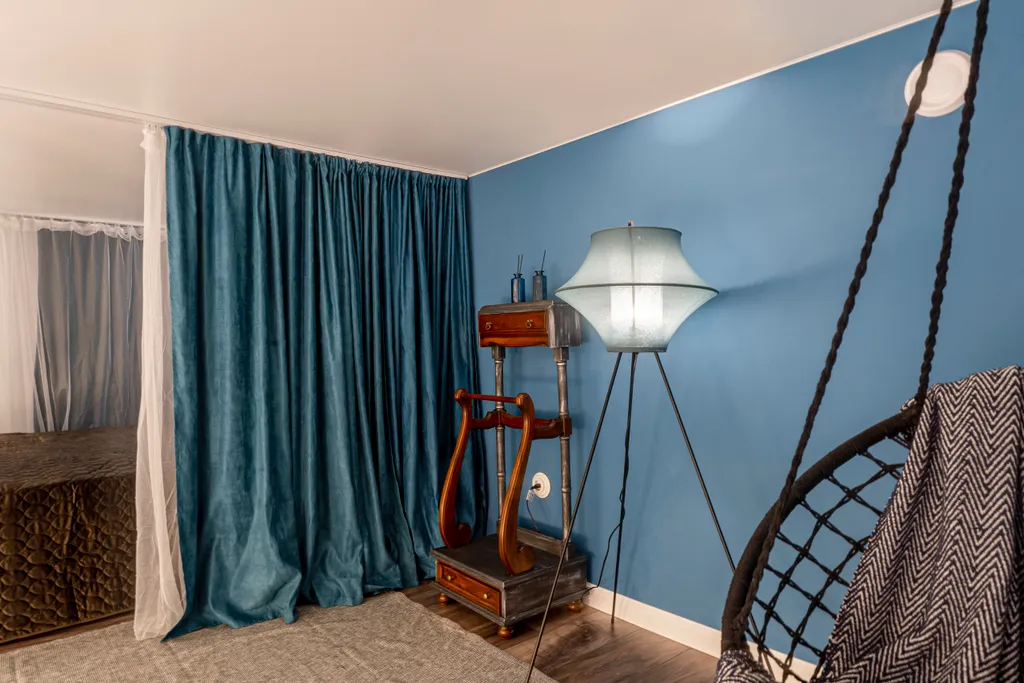 Есть дополнительный хороший матрас для пятого человека. Постельное бельё, одеяла, подушки с разным наполнителем. Есть возможность завесить шторы вокруг кровати и дивана, для любителей спать в полной темноте и уединении.