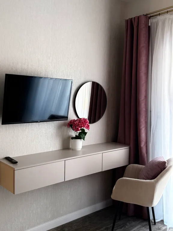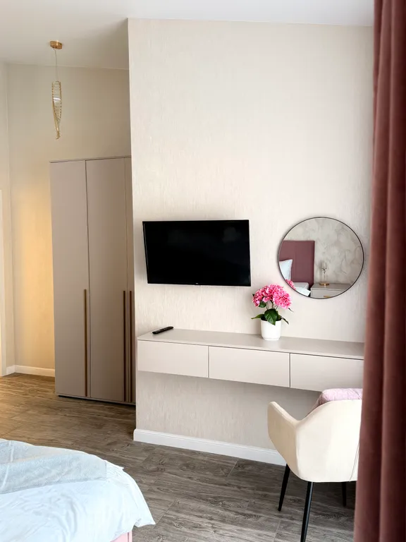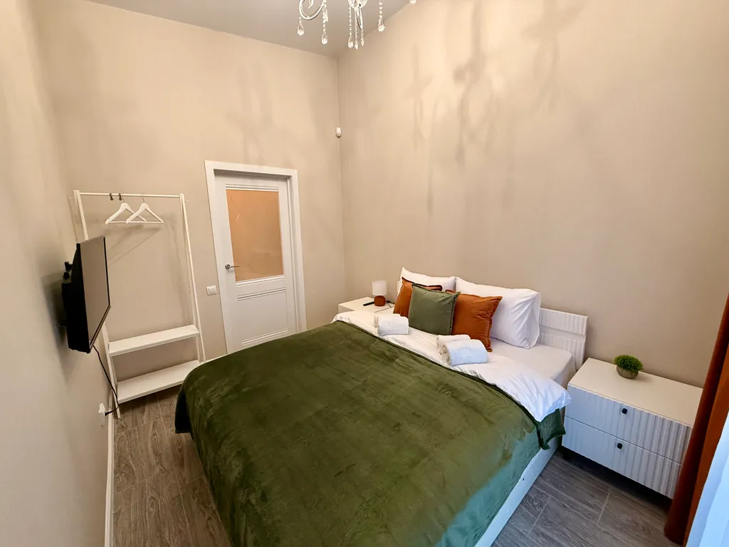Три комнаты, в каждой — удобная и большая двуспальная кровать 160/180 см × 200 см.