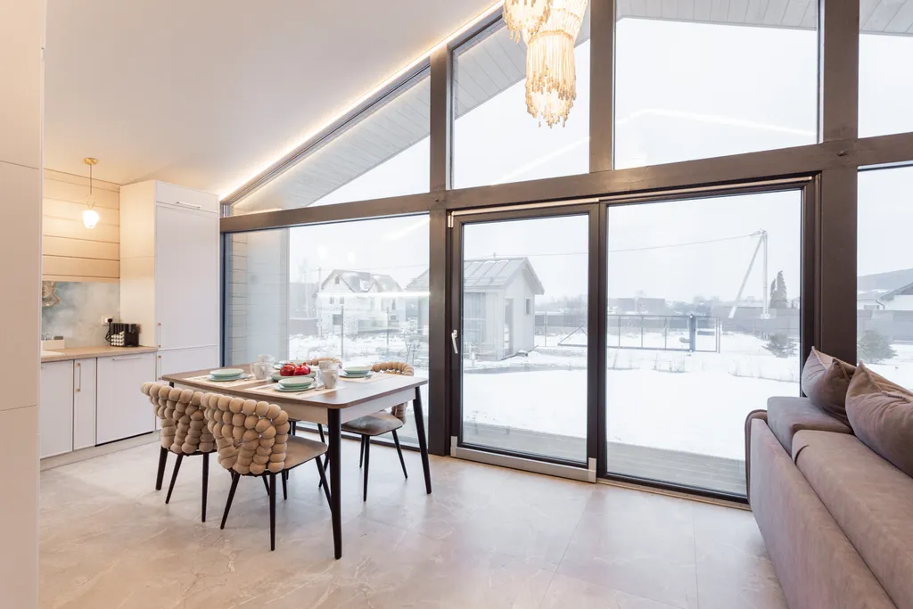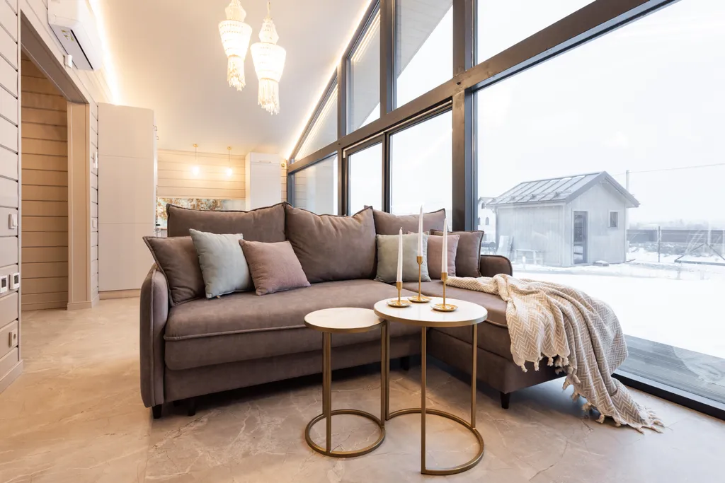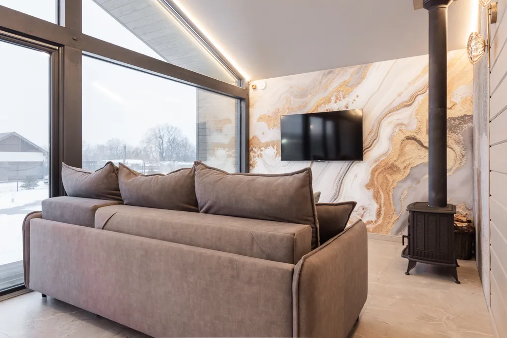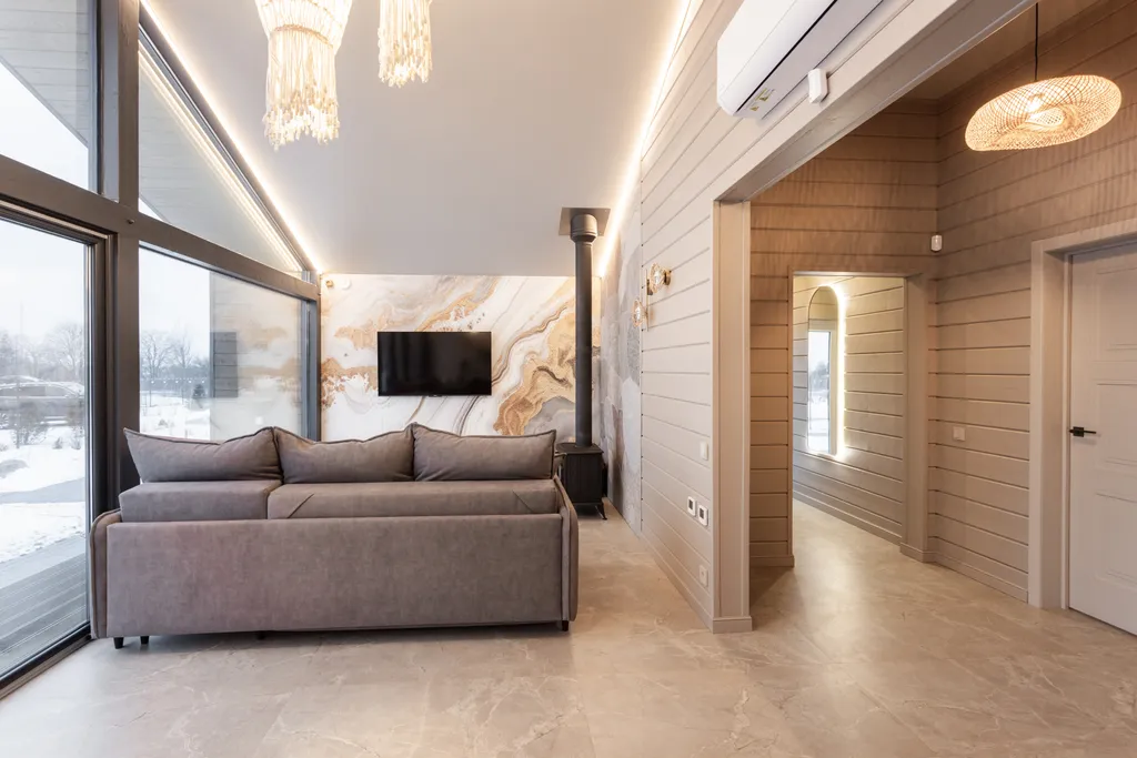 Большая кухня-гостиная с диваном-кроватью