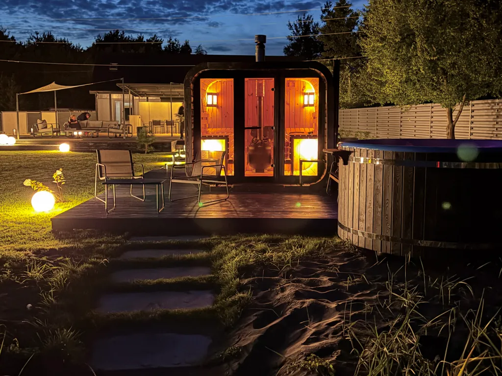 - Купель на дровах с подсветкой и пузырьковым массажем