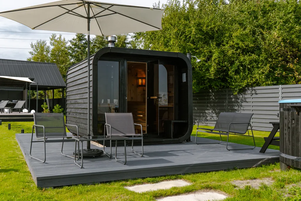 Баня у самой кромки воды, дровяная купель под открытым небом, тишина, в которой слышен только прибой.