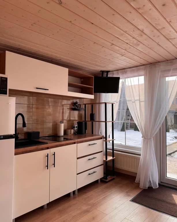 Комфорт гостей: компактная кухня со всем необходимым, ванная комната со всеми принадлежностями, удобная кровать, интернет и smart TV.