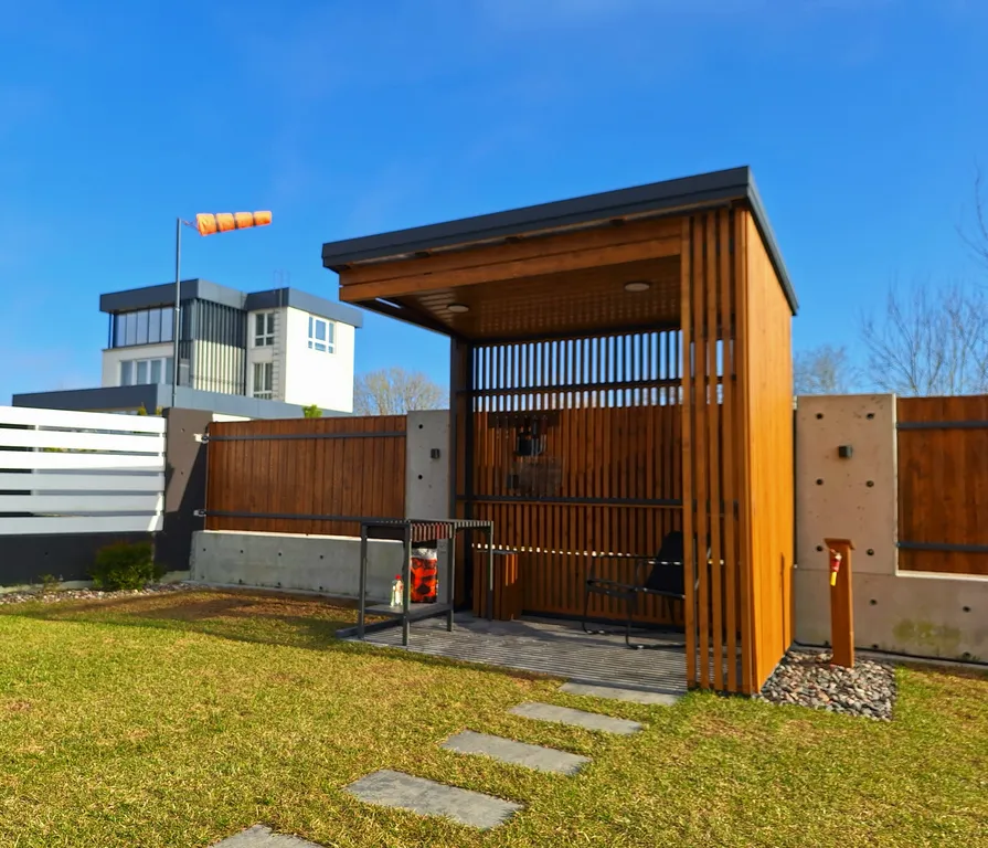 На придомовой территории есть качели, оборудована зона барбекю с мангалом и всем необходимым, просторный газон для игр и отдыха на свежем воздухе.